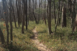 ここで林道から外れて、登山道になります(8:23)。 Canon EOS Kiss X7 EF-S24mm f/2.8 STM 24mm(38mm) ISO 320 F5.6 1/80s |