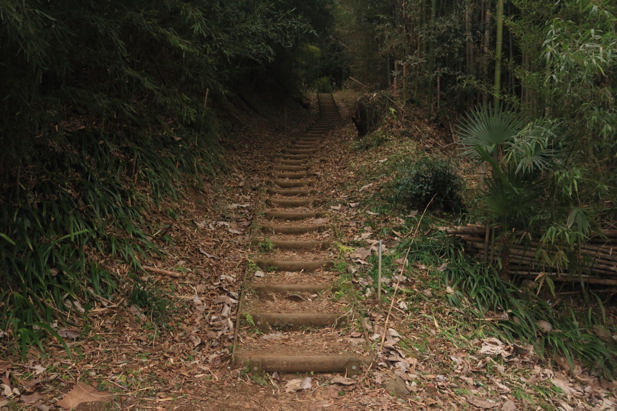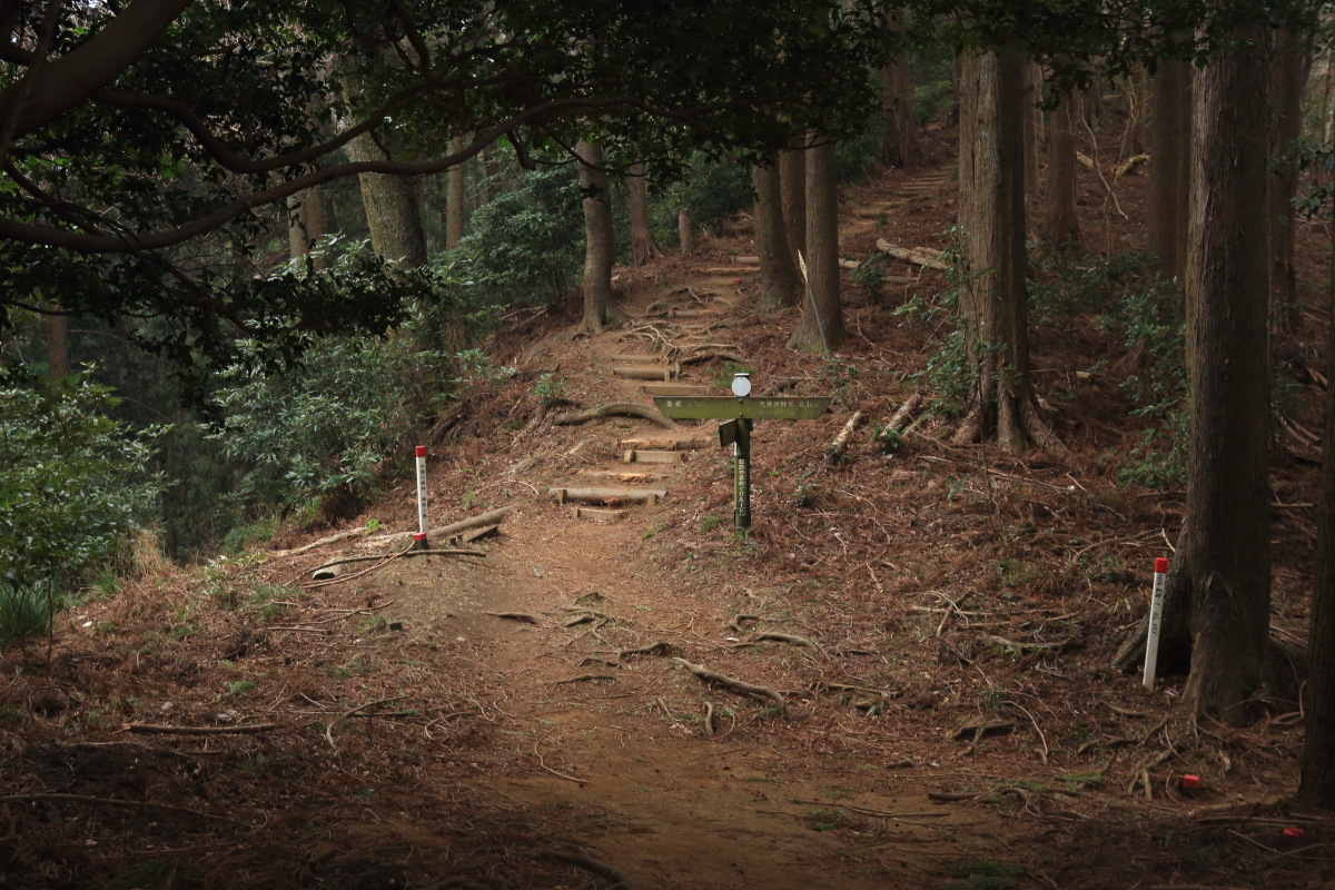 順礼峠(191m)到着(8:44)。 右に見えている下り階段は通行止めでした。 Canon EOS Kiss X7 EF-S24mm f/2.8 STM 24mm(38mm) ISO 160 F5.6 1/80s |