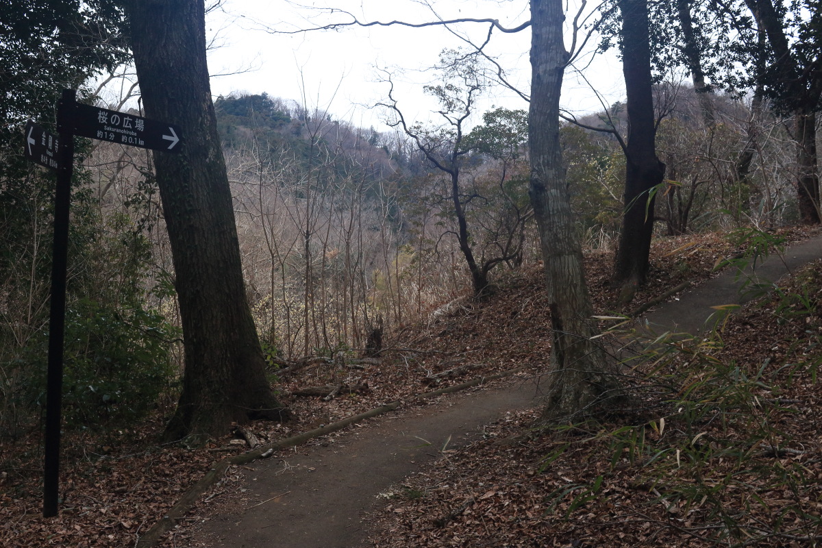 分岐に到着(振り返って撮影 7:40)。これから進む道は右側の桜山方面です。 Canon EOS Kiss X7 EF-S24mm f/2.8 STM 24mm(38mm) ISO 640 F5.6 1/80s |