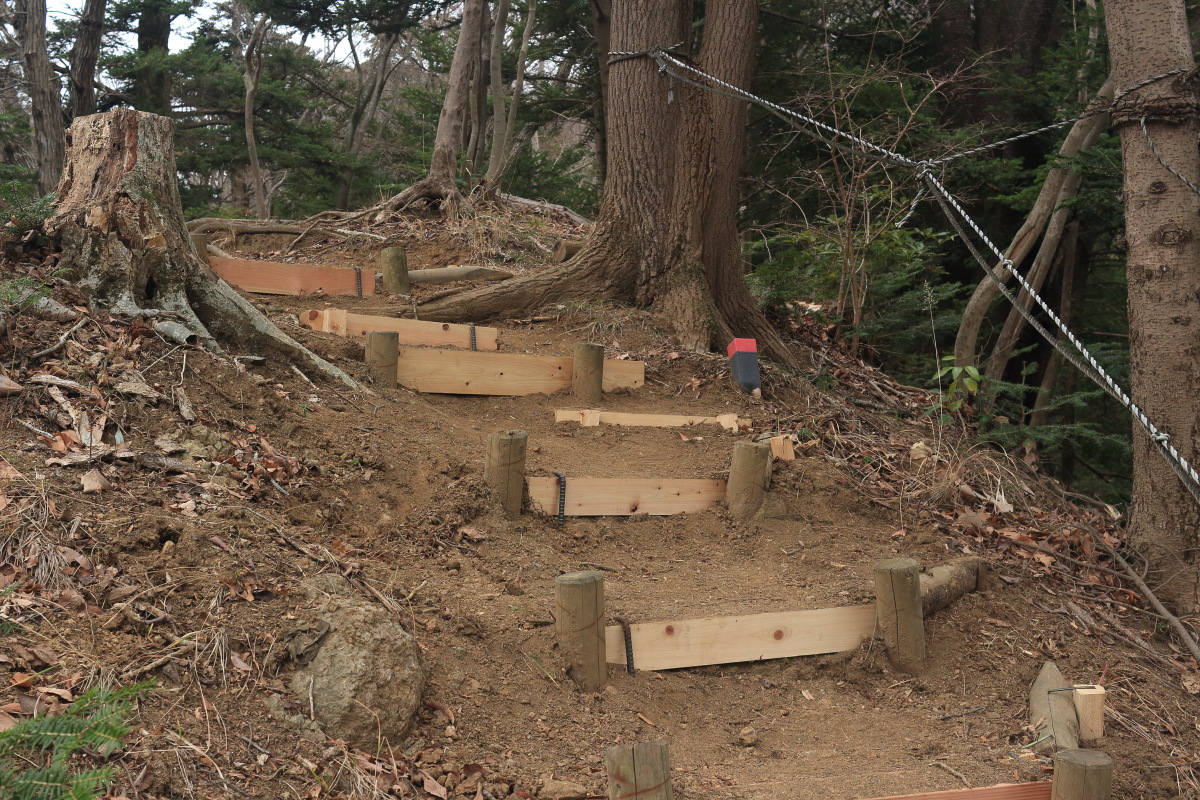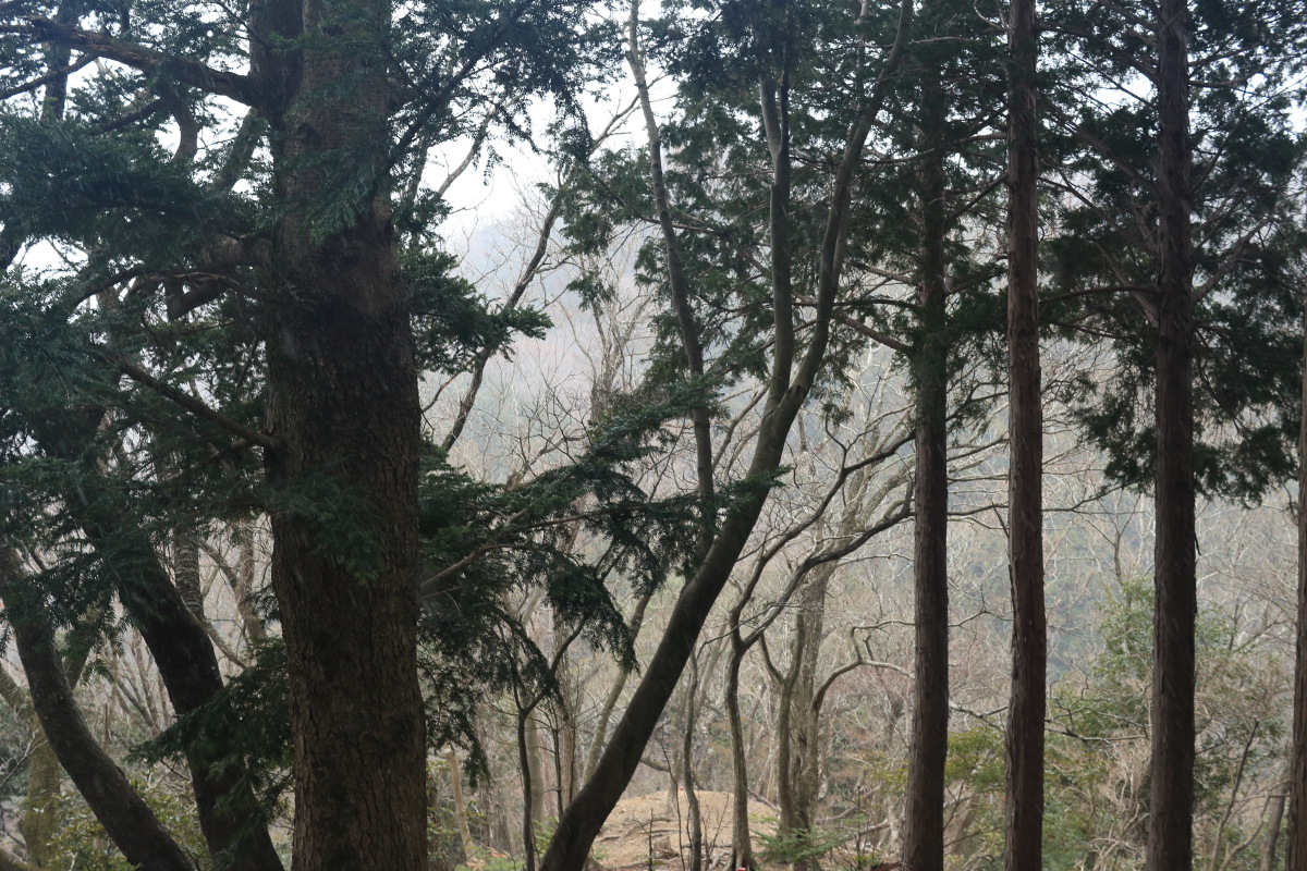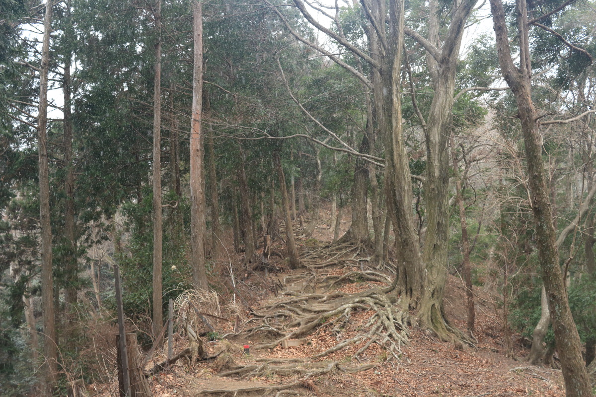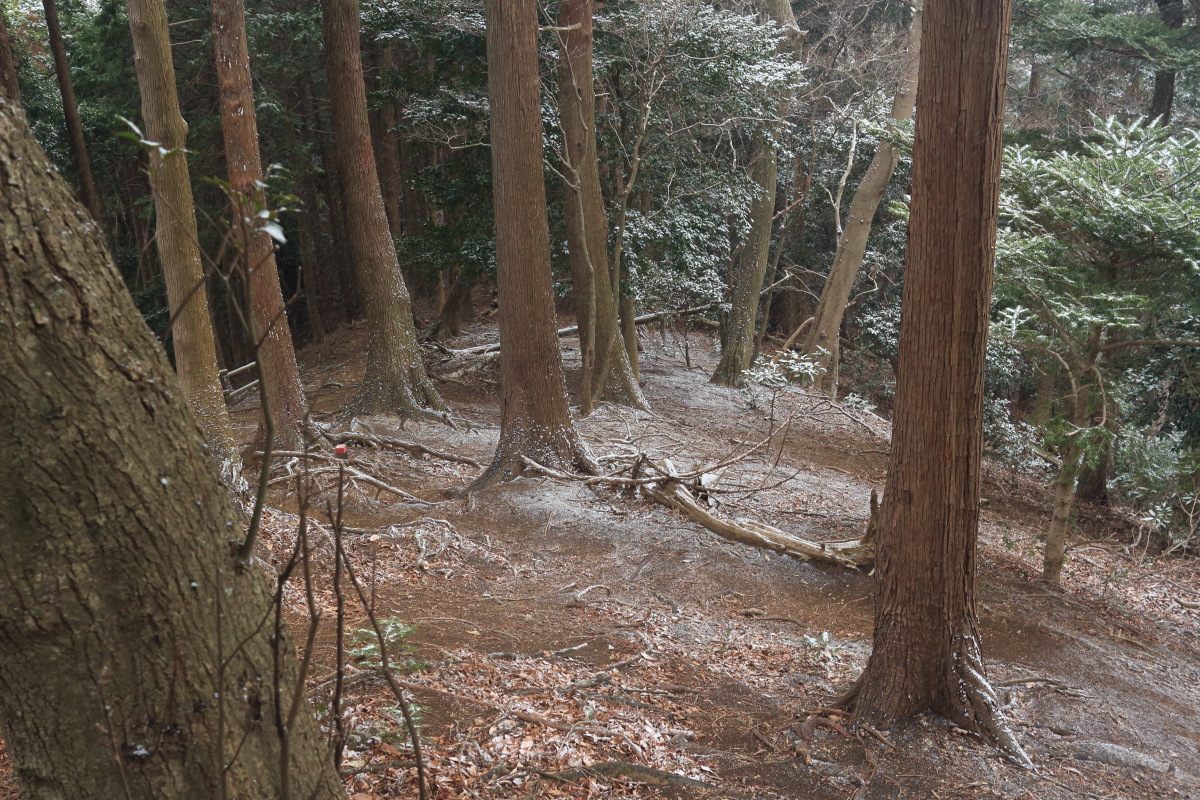 神社の裏から、普通の登山道になります。 そこそこ急ではありましたが、段差の小さな階段のおかげで、脚への負荷が小さいので助かります。 Canon EOS Kiss X7 EF-S24mm f/2.8 STM 24mm(38mm) ISO 1250 F5.6 1/80s |