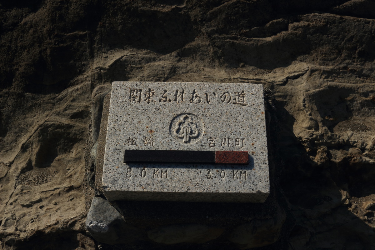 陸側を見ると、関東ふれあいの道の石柱がありました。 Canon EOS Kiss X7 EF-S24mm f/2.8 STM 24mm(38mm) ISO 100 F5.6 1/160s |