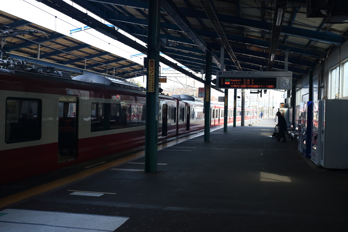 三崎口駅到着(11:23)。三崎マグ口駅? Canon EOS Kiss X7 EF-S24mm f/2.8 STM 24mm(38mm) ISO 100 F11.0 1/500s |